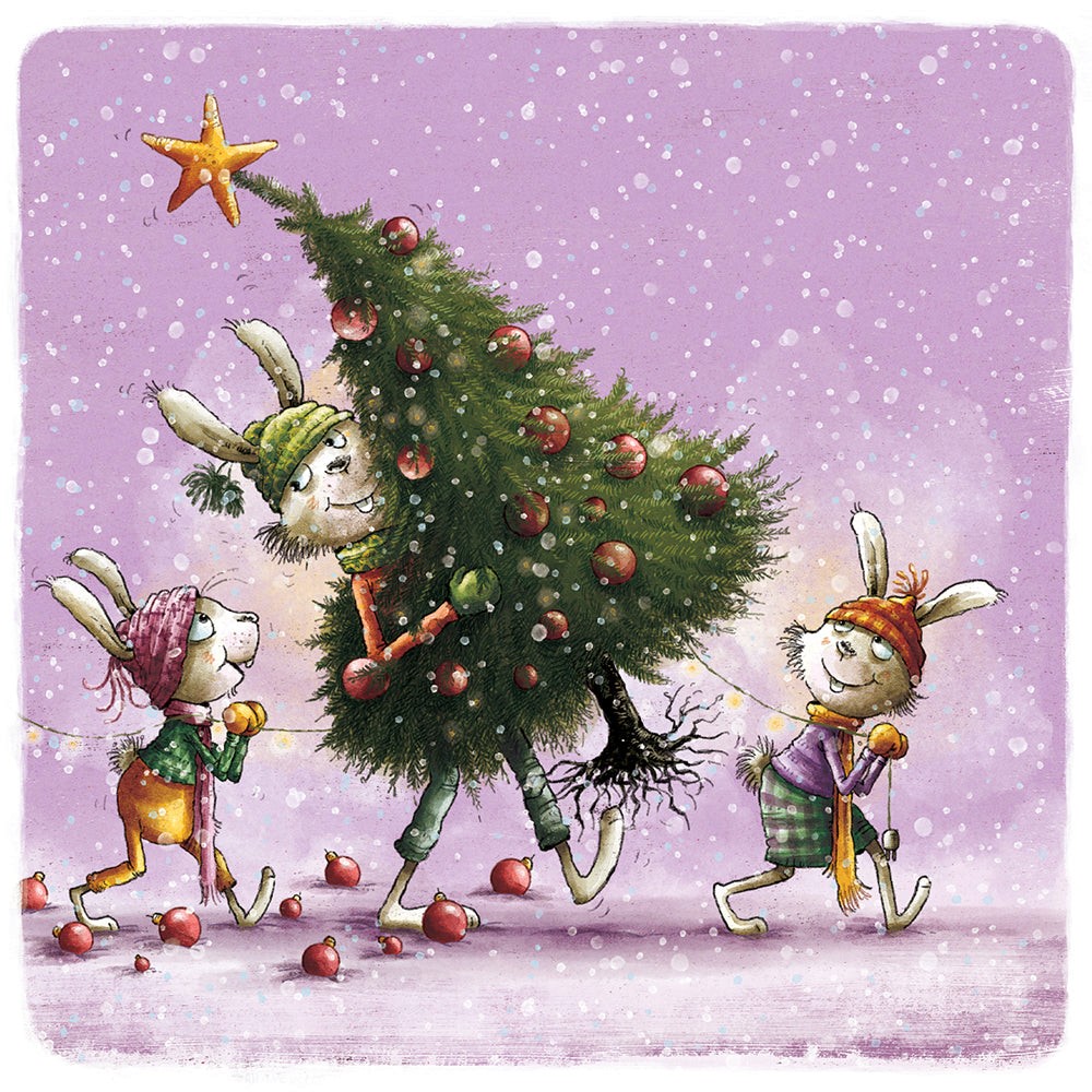 Handgemaakte Wenskaart - Samen de kerstboom dragen