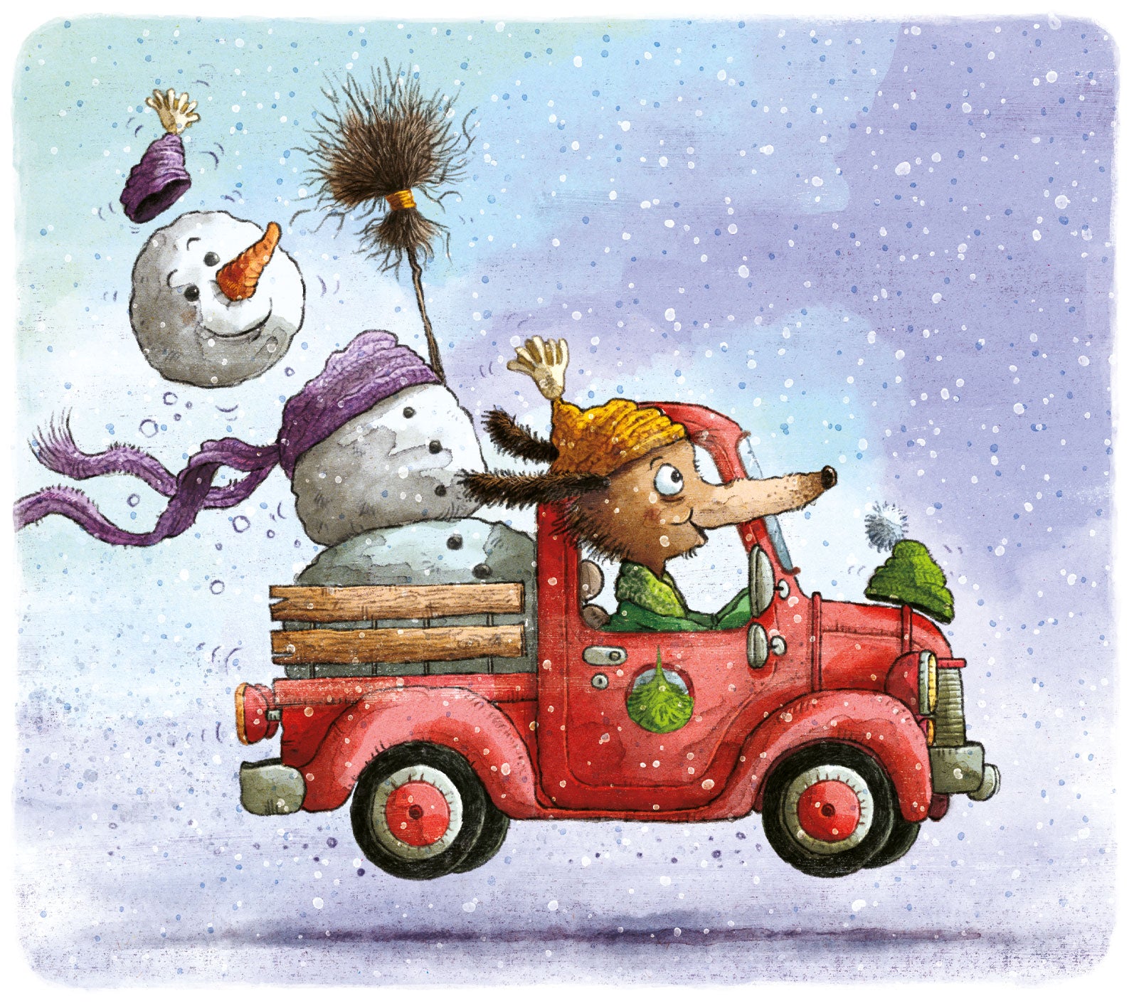 ☃️🚚 Een oude vrachtwagen met een frisse lading sneeuw en één trotse sneeuwman die meereist. Winter op wielen. ☃️🚚